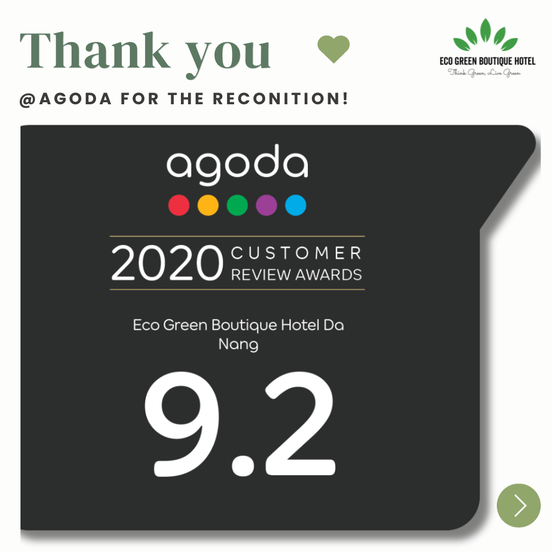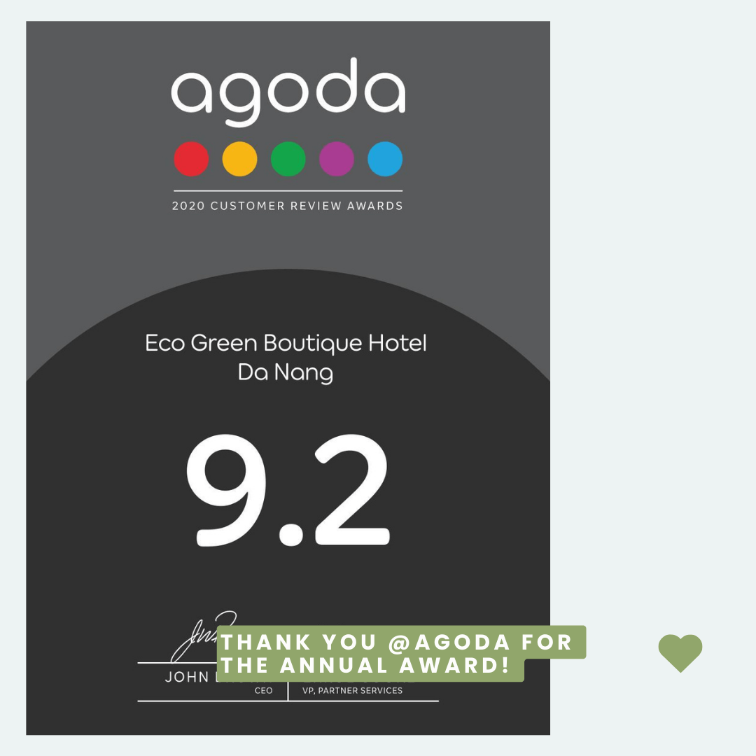 We are thrilled to announce that Eco Green Boutique Hotel has received the prestigious Agoda’s 2020 Customer Review Award.