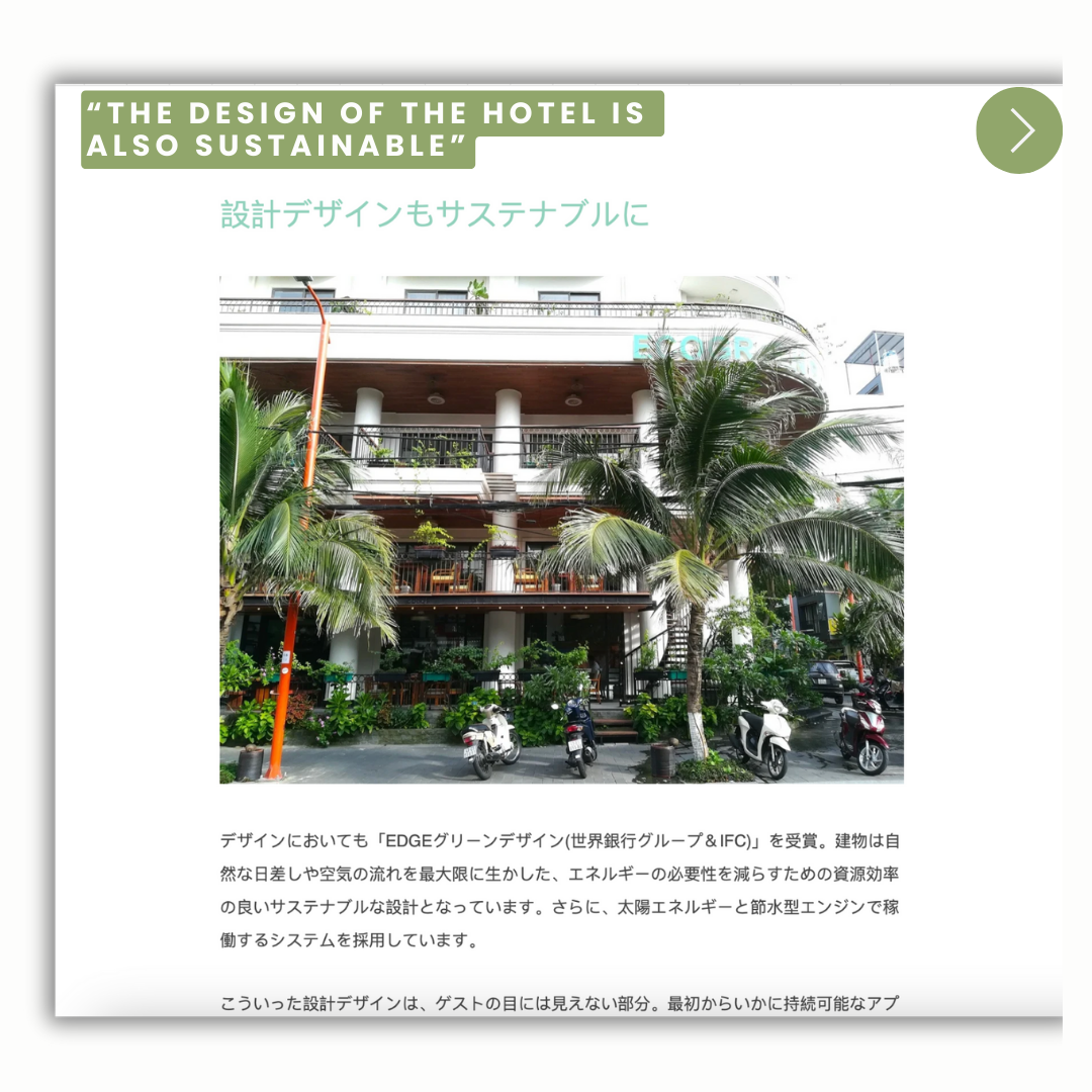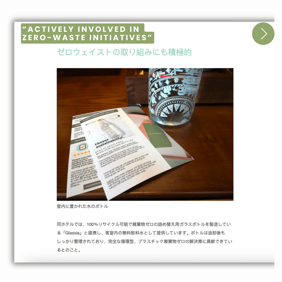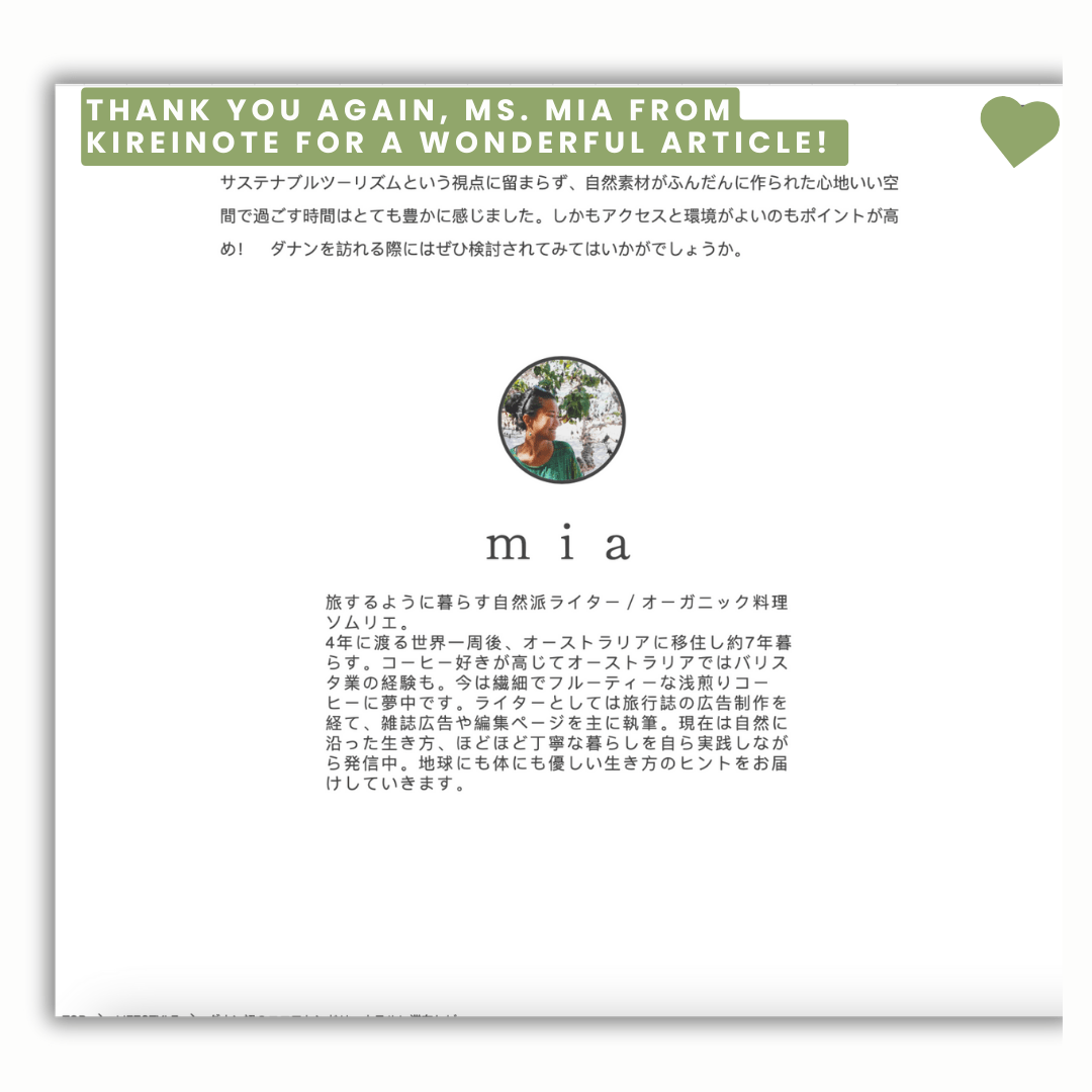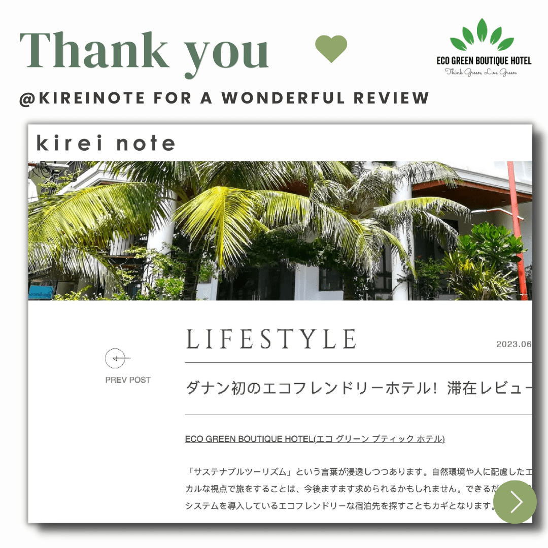 Thank you team KireiNote for staying with us and for writing a wonderful review about our eco-friendly approach. It’s our great pleasure to have you as our guest and we look forward to welcoming you again soon!